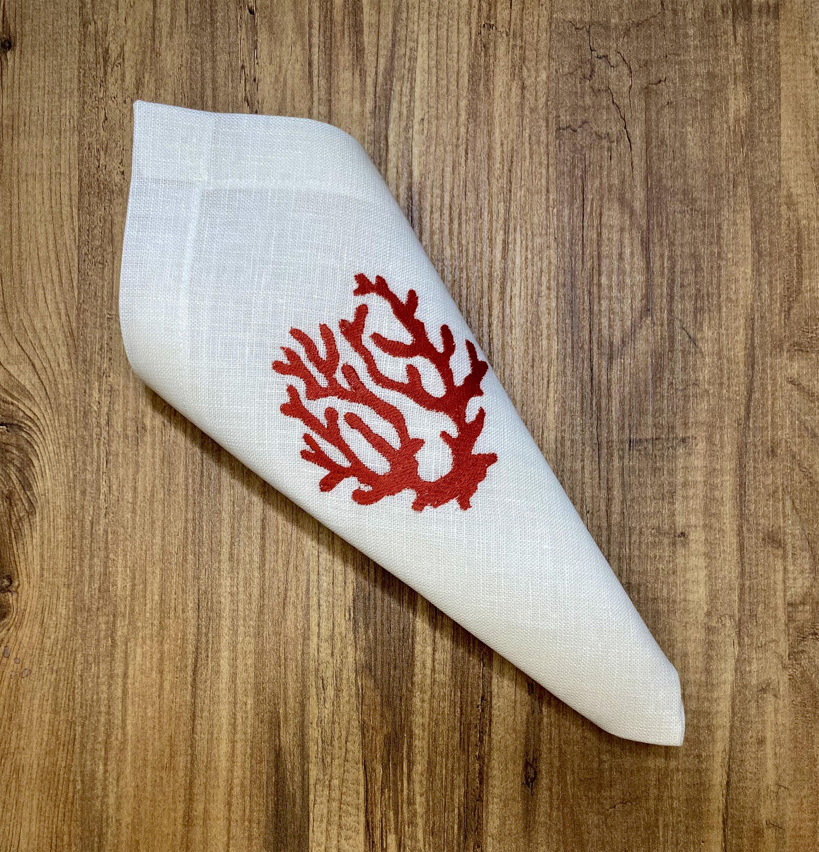 Coral Peçete Takımı, mercandan esinlenen nakışı ve rengiyle sofralarda yaz havasını zamansızlaştırıyor.