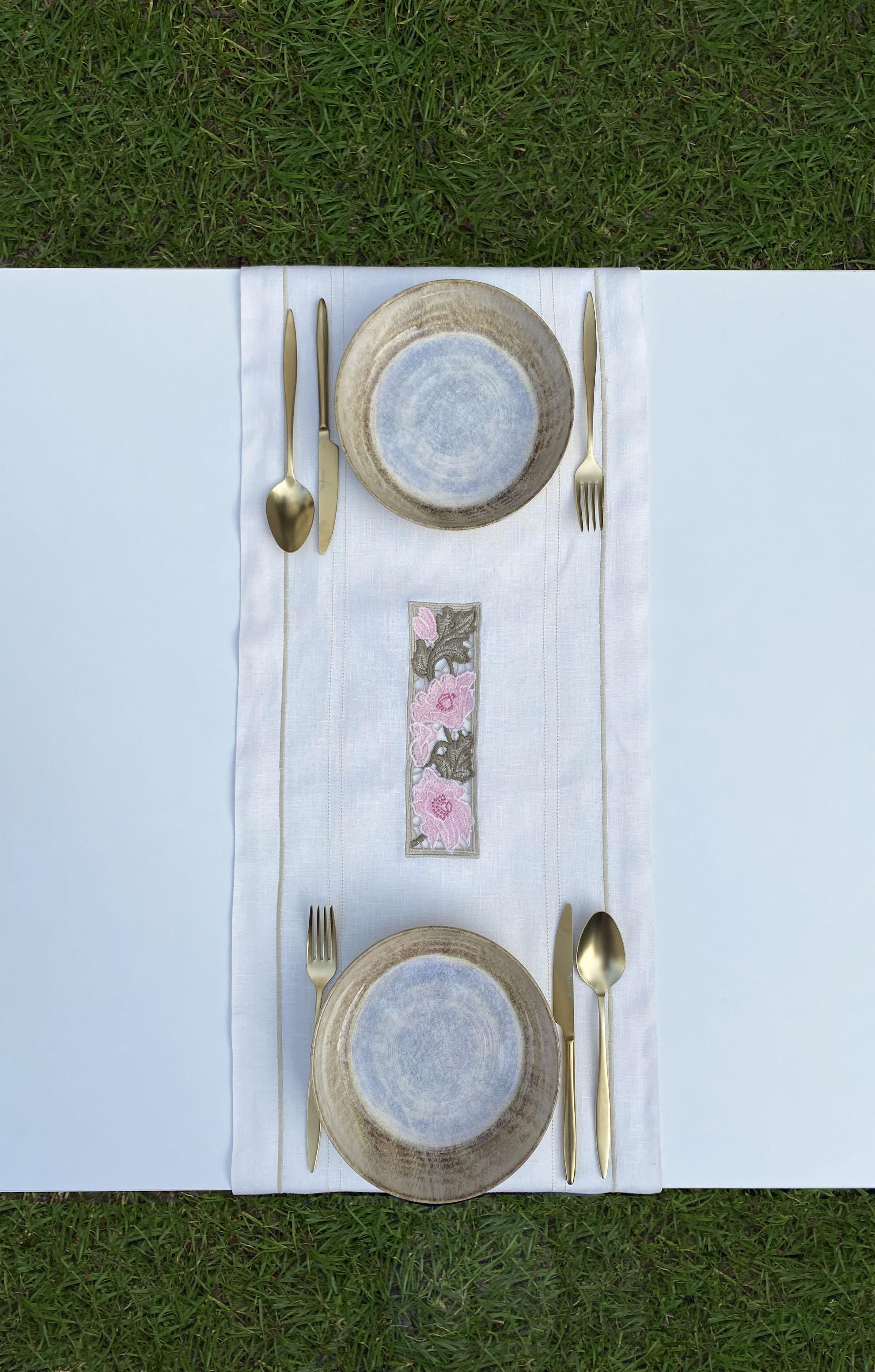 Hedera Runner, zarif tasarımıyla sofralarınıza doğal bir şıklık katmak için özel olarak tasarlandı. Adını; dayanıklılığı ve güzelliğiyle bilinen sarmaşık bitkisi Hedera'dan alan bu runner, çift sıra sarma nakışı ve antika dikişi ile zarif çiçek nakışını bir araya getiriyor.