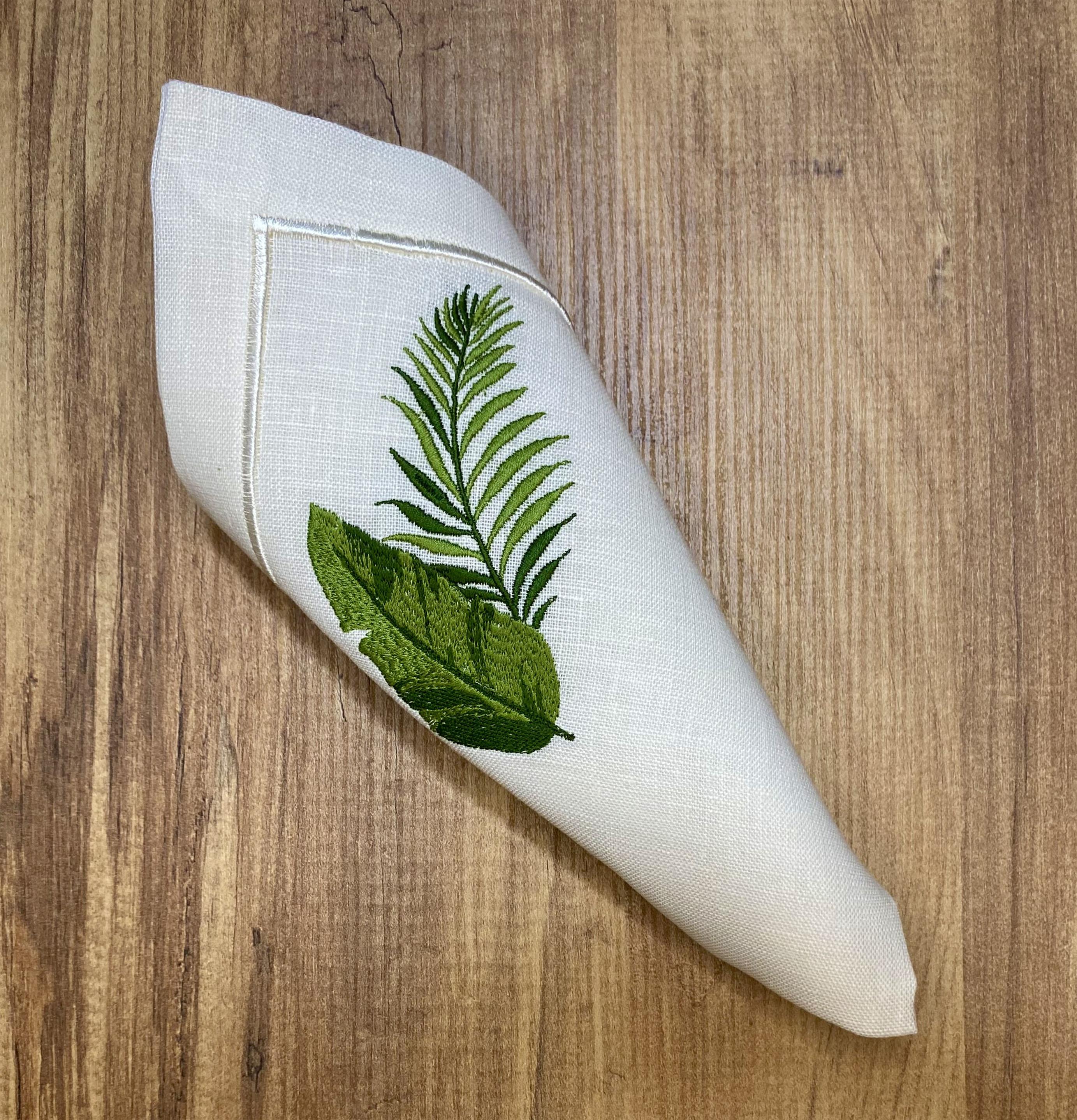 Natura Peçete Takımı yaprak nakışını tek sıra sarma nakışıyla bütünlüyor. Doğanın düzenini ve doğadaki renk tonlarının uyumunu hatırlatan tasarımıyla Natura serisi, ormanların dinginliğini masalara davet ediyor.