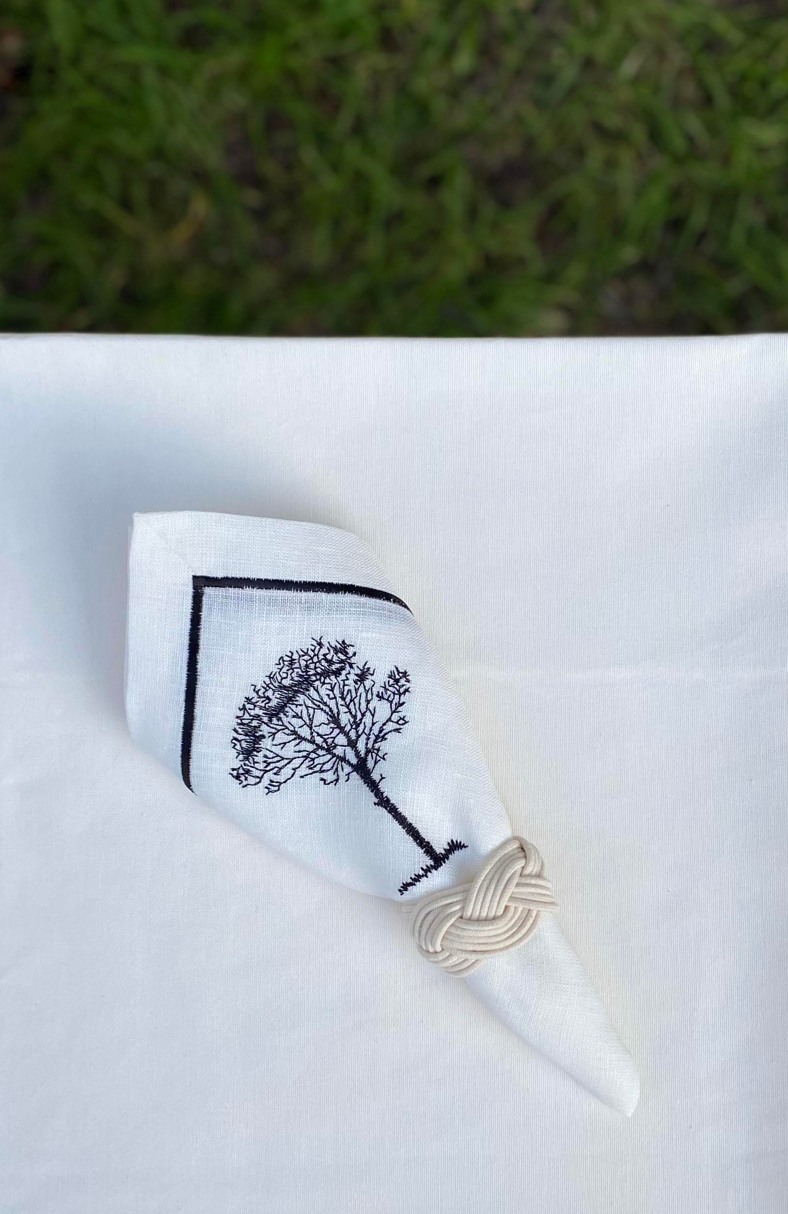 Şık sofralar için hazırlanan Saltus Peçete Takımı sarma nakışını ağaç nakışıyla bir araya getiriyor. Latince "orman" anlamına gelen Saltus kelimesinden adını alan seri, siyah ile beyazın eşsiz uyumunu sofralarınıza taşıyor.