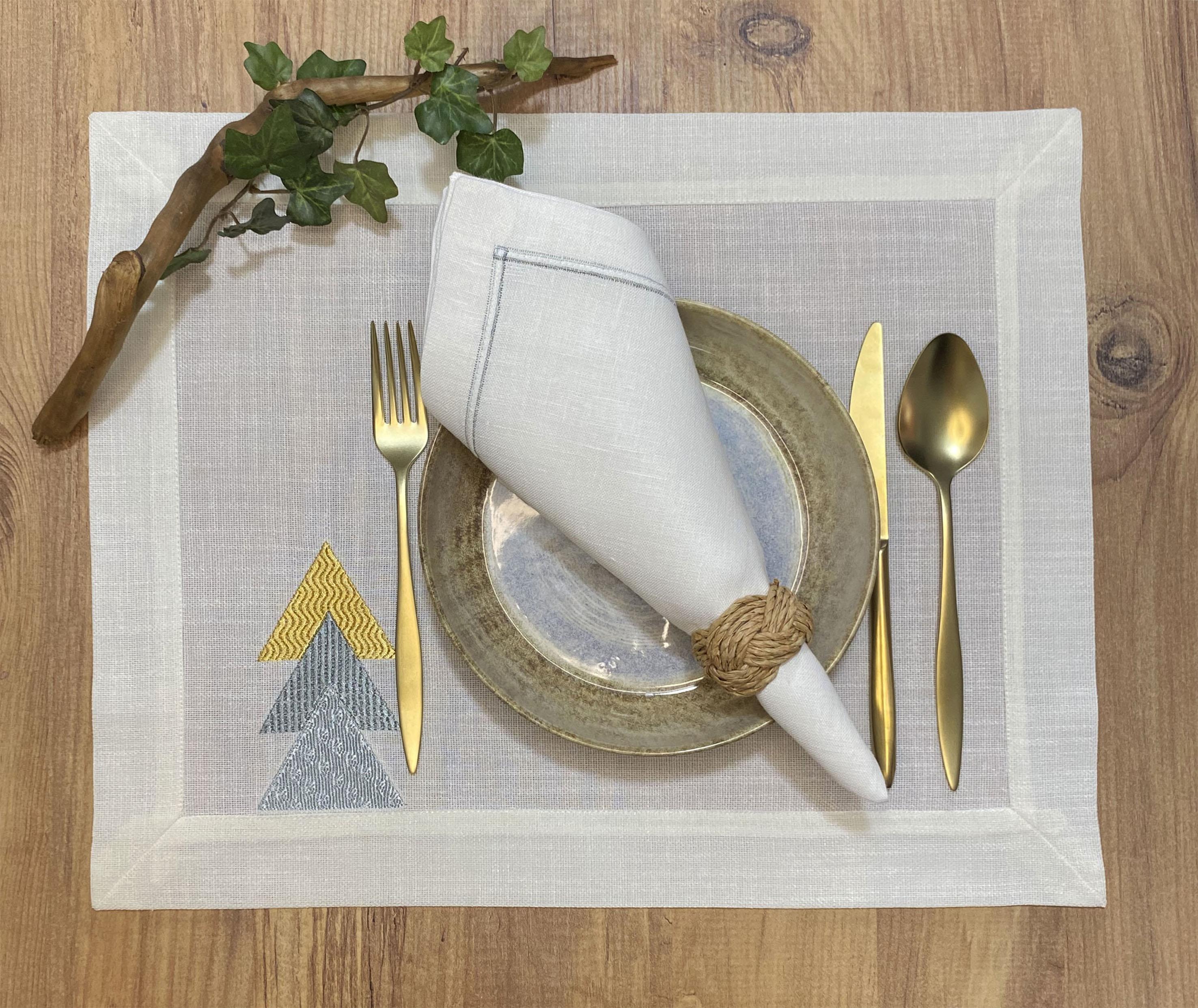 Geometrik şekil ve desen dolgulu tasarımlarla hazırlanan Volare Amerikan Servis Takımı, nakışındaki renk uyumuyla farklı renkteki masa takımları için kullanım kolaylığı sağlıyor.